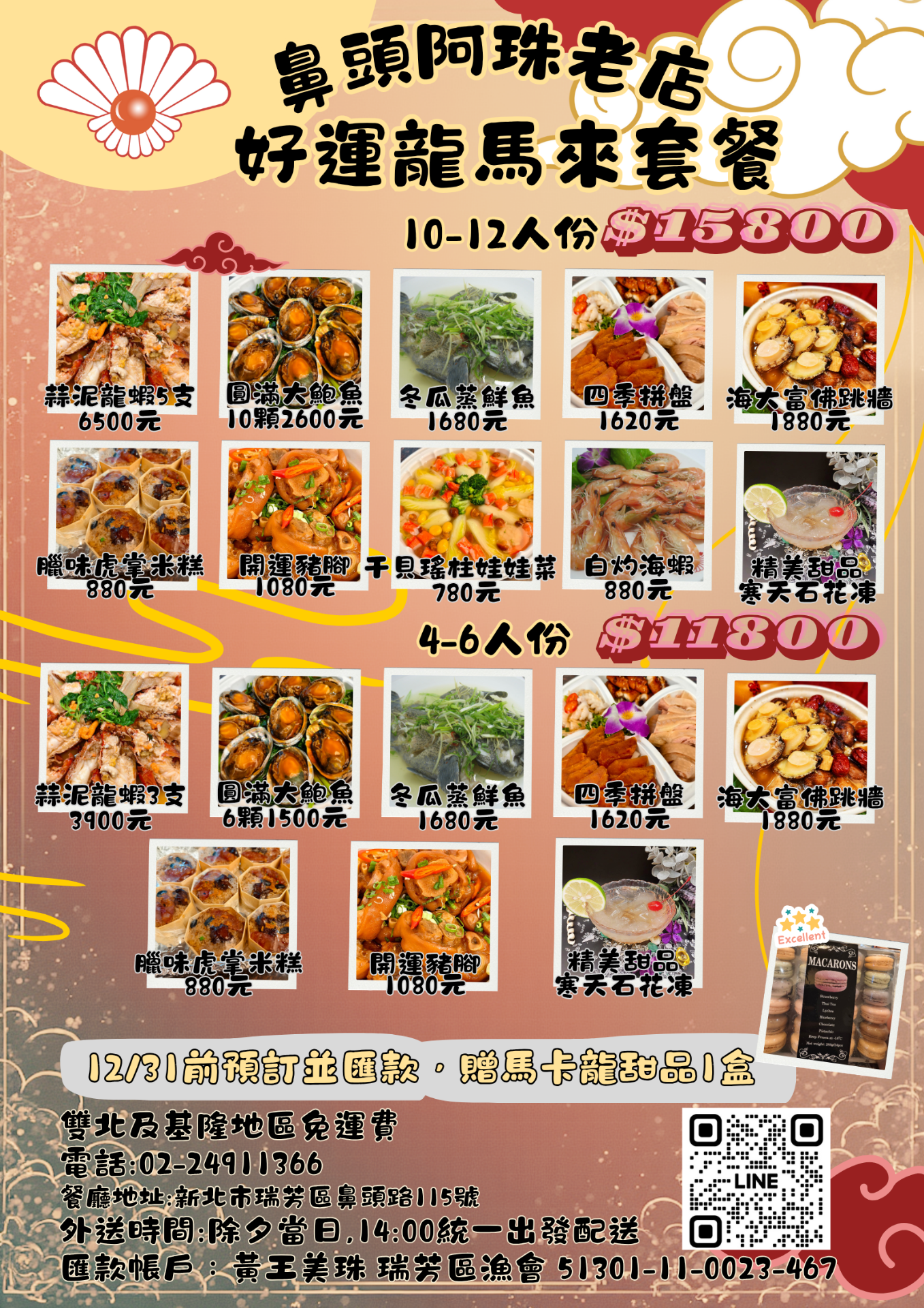 12/31前完成預購及匯款,即贈送馬卡龍1盒